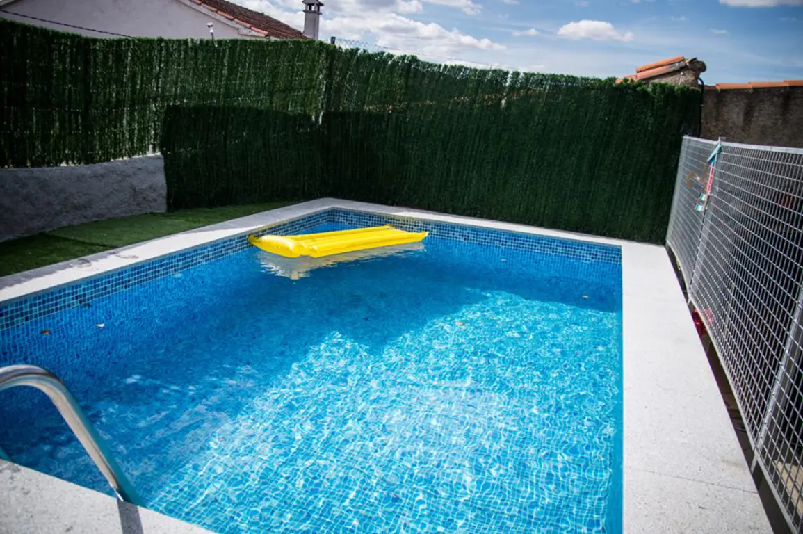 En el jardín trasero, hay una piscina al aire libre y un cuidado jardín para relajarse.